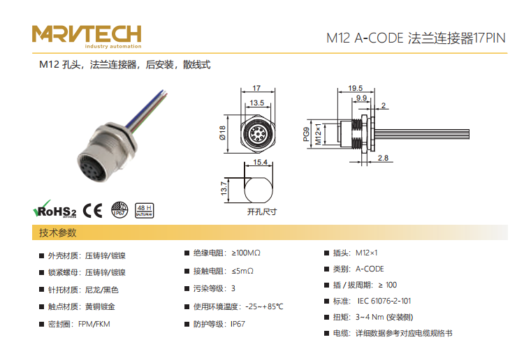 M12-口金-フランジコネクタ-後付け-散線式-17 PIN