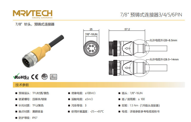 7/8"-針-プレキャストコネクタ-3/4/5/6 PIN