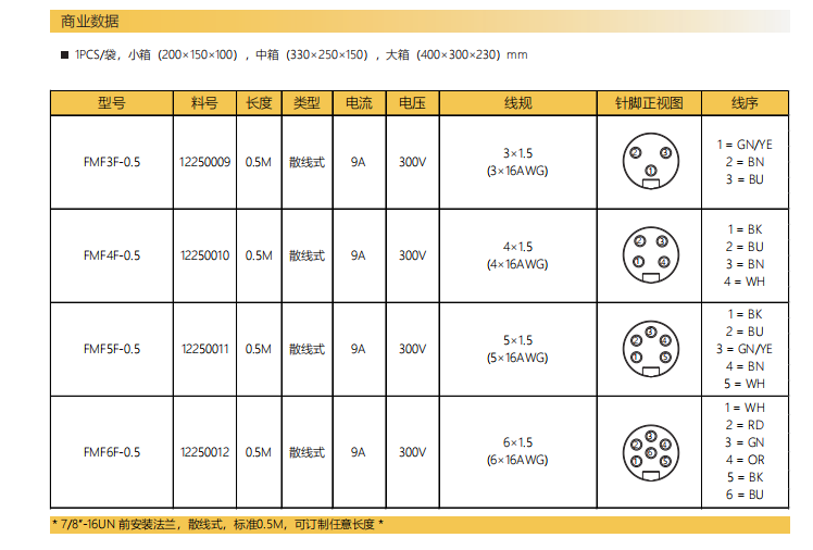 7/8"-口金-フランジコネクタ-前取付け-散線式-3/4/5/6PIN