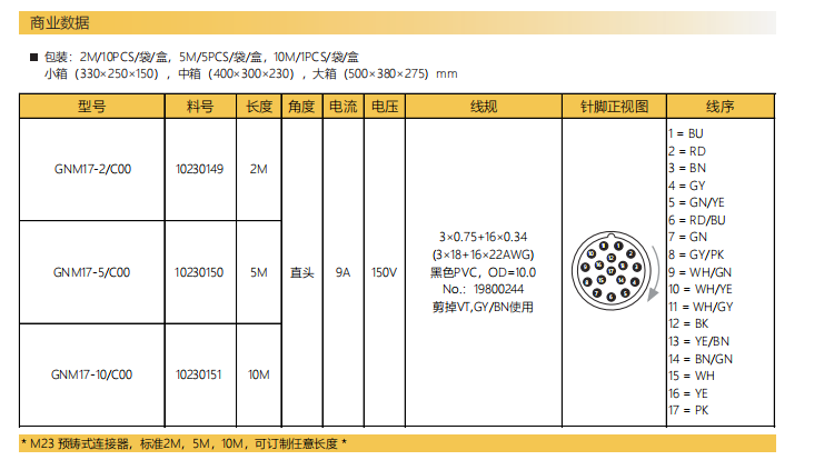 M23-雌ねじ-針-プレキャストコネクタ-17 PIN