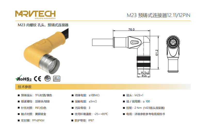 M23-雌ねじ-口金-プレキャストコネクタ-12.7/12.9 PIN