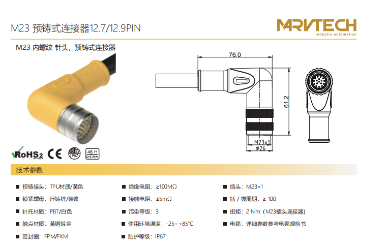 M23-雌ねじ-針-プレキャストコネクタ-12.7/12.9 PIN