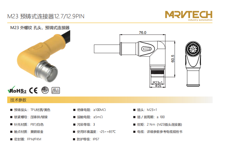 M23-雄ねじ-口金-プレキャストコネクタ-12.7/12.9 PIN