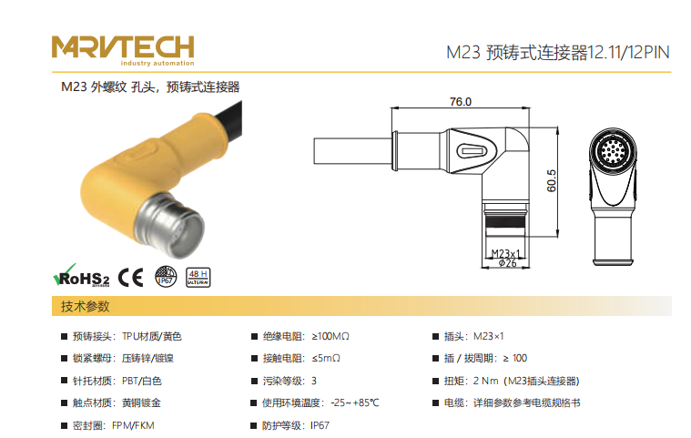 M23-雄ねじ-口金-プレキャストコネクタ-12.7/12.9 PIN