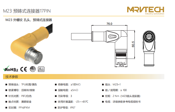 M23-雄ねじ-口金-プレキャストコネクタ-17 PIN
