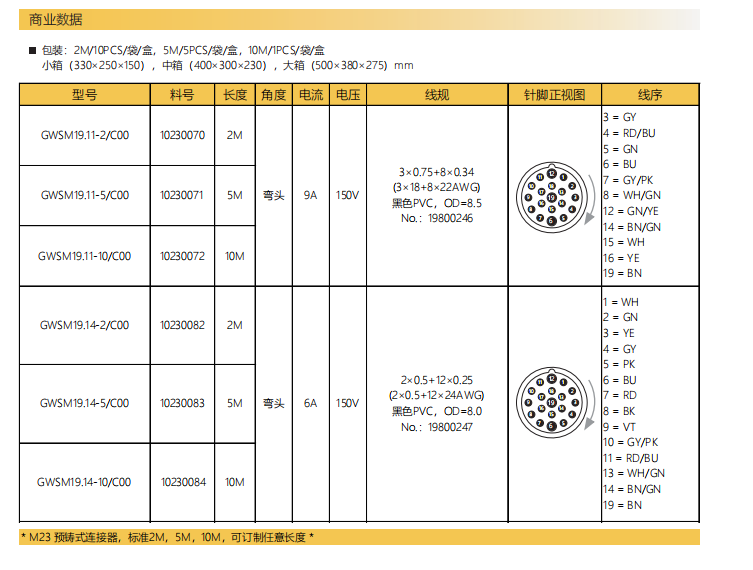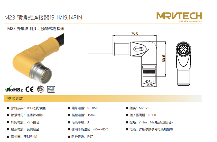 M23-雄ねじ-針-プレキャストコネクタ-19.15 PIN