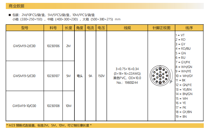 M23-雄ねじ-針-プレキャストコネクタ-19.15 PIN