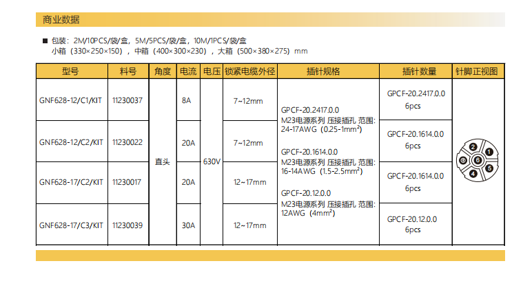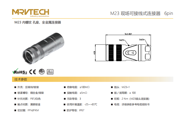 M23-雌ねじ-孔座-全金属コネクタ-6 pin