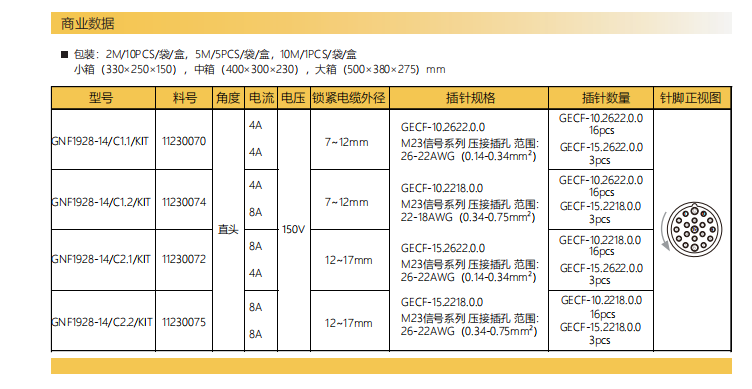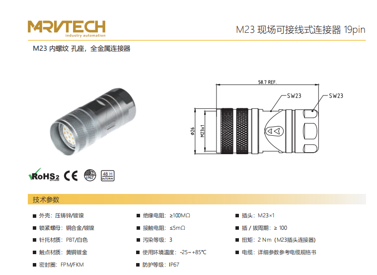 M23-雌ねじ-孔座-全金属コネクタ-19 pin