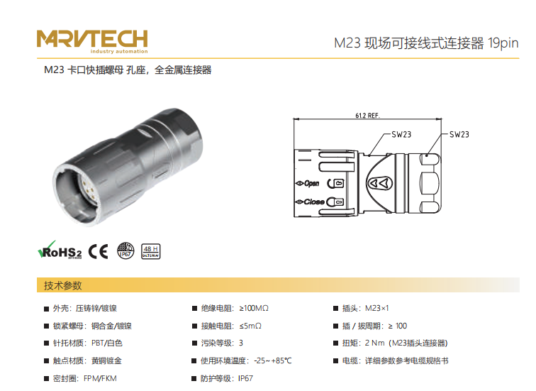 M23-ラッチクイックプラグナット-ソケット-フルメタルコネクタ-19 pin