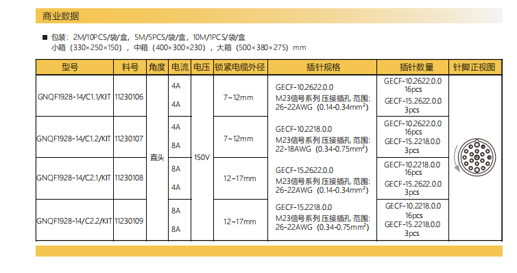 M23-雌ねじ-針座-全金属コネクタ-12/17 pin