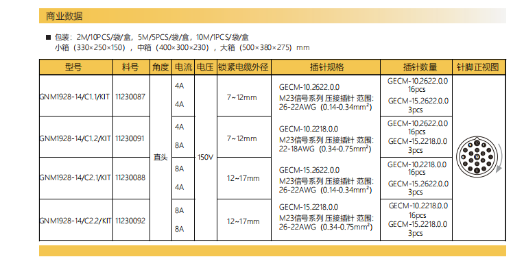 M23-雌ねじ-針座-全金属コネクタ-12/17 pin