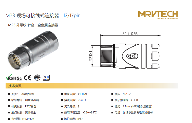 M23-外螺纹-针座-全金属连接器-12/17pin