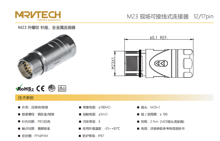M23-外螺纹-针座-全金属连接器-12/17pin