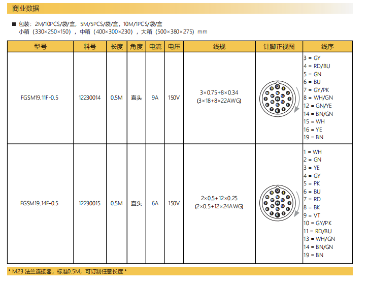 M23-雄ねじ-針-フランジコネクタ-前取付け-散線式-19.11/19.14PIN