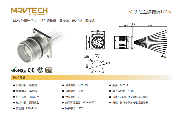 M23-雄ねじ-口金-フランジコネクタ-前面取付-RS19.8-散線式-19.11/19.14PIN