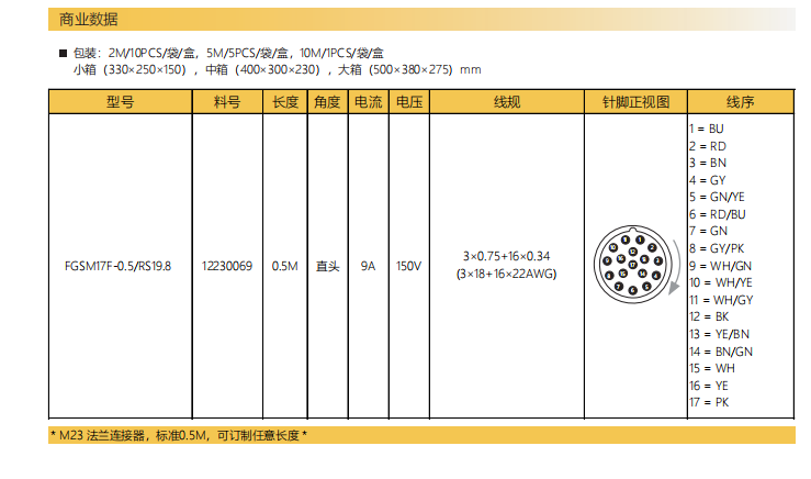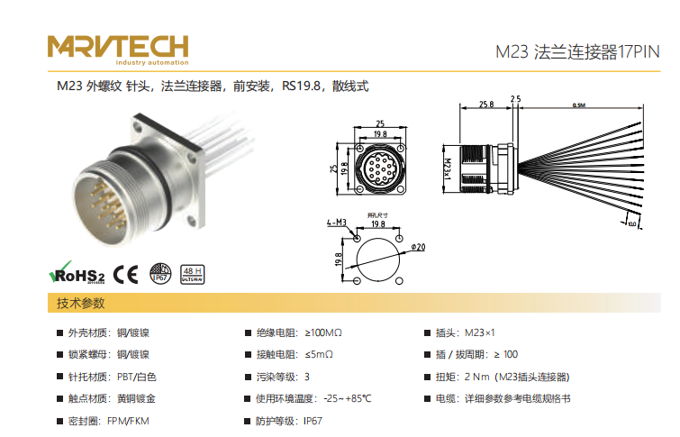 M23-雄ねじ-針-フランジコネクタ-前取付-RS19.8-散線式-17 PIN