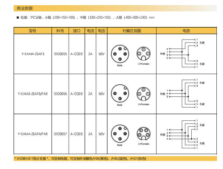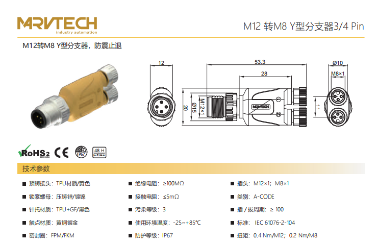 M12回転M8-Y型分岐器-防振後退防止-3/4 Pin