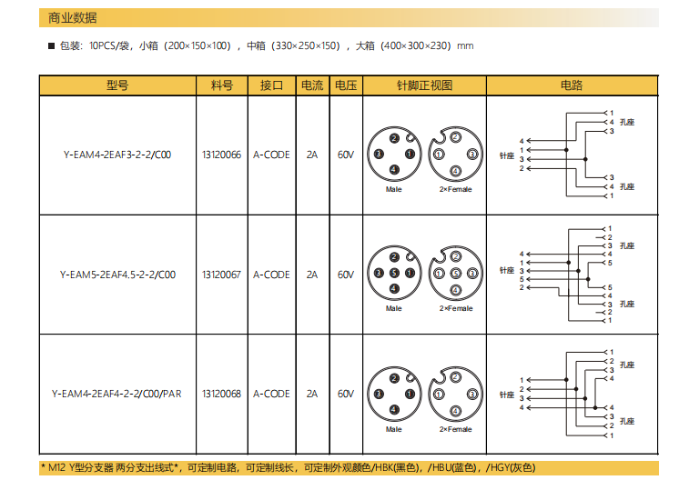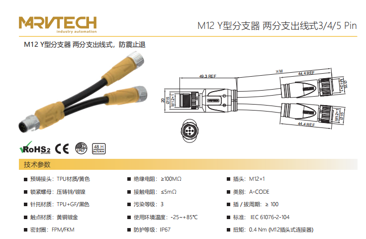 M12-Y型分岐器-二分払出線式-防振後退防止-3/4/5 Pin