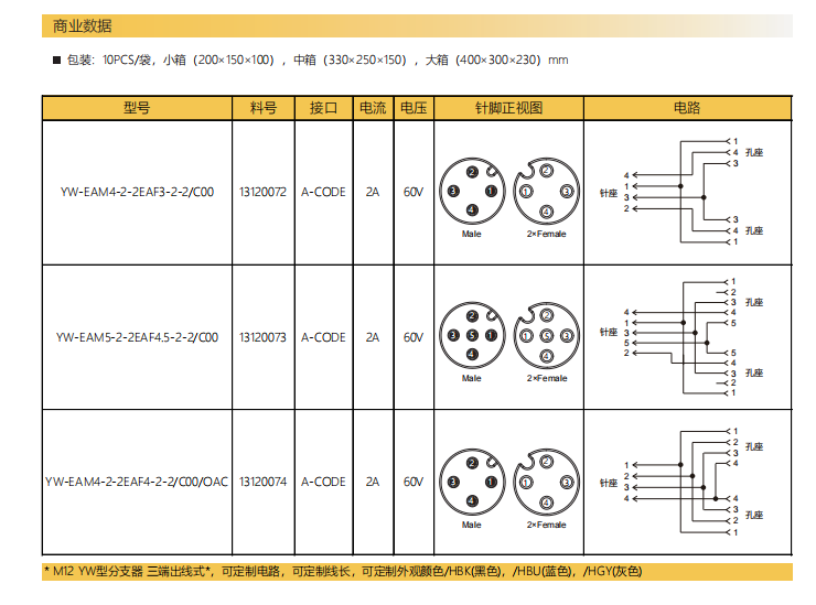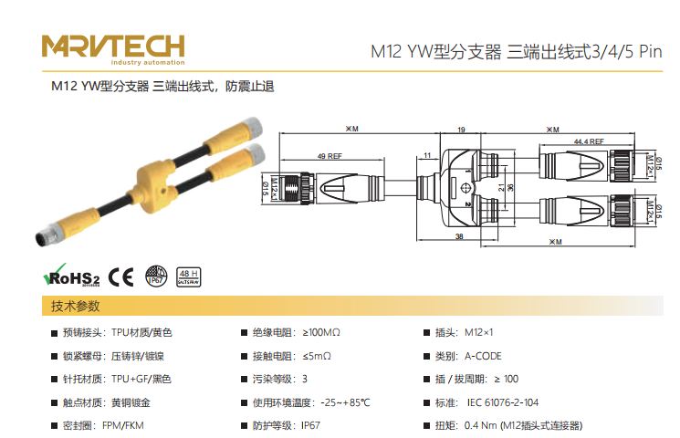 M12-YW型分岐器-三端出線式防震止退-3/4/5 Pin