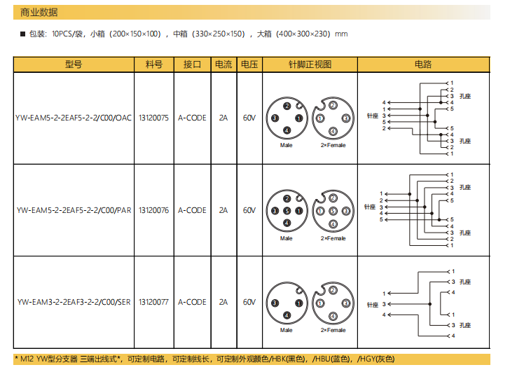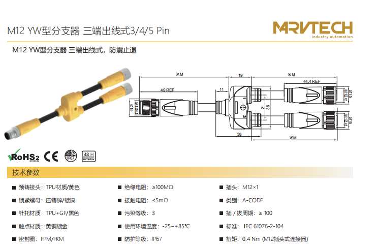 M12-YW型分岐器-三端出線式防震止退-3/4/5 Pin