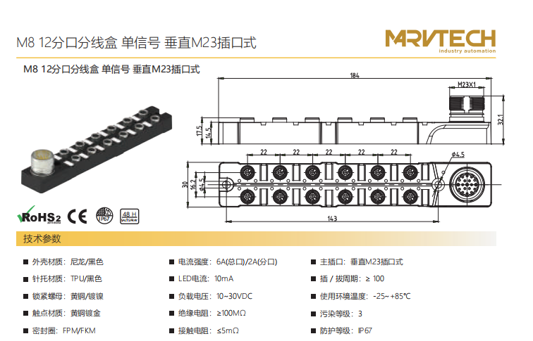 M8-12スプリットスプリットボックス-単信号-垂直M23ソケット式