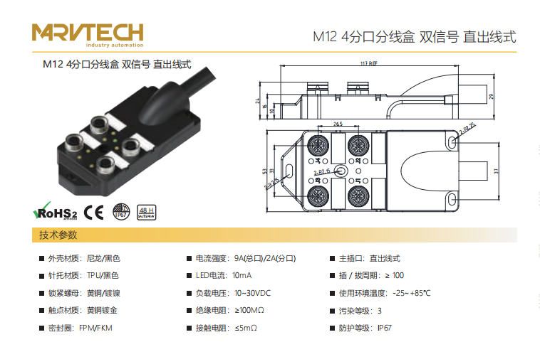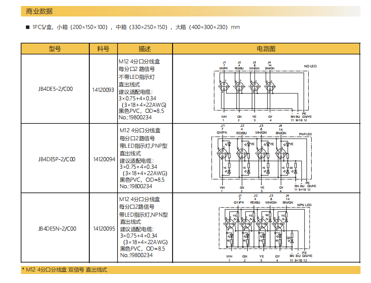 M12-4スプリットスプリットボックス-単信号-直出線式