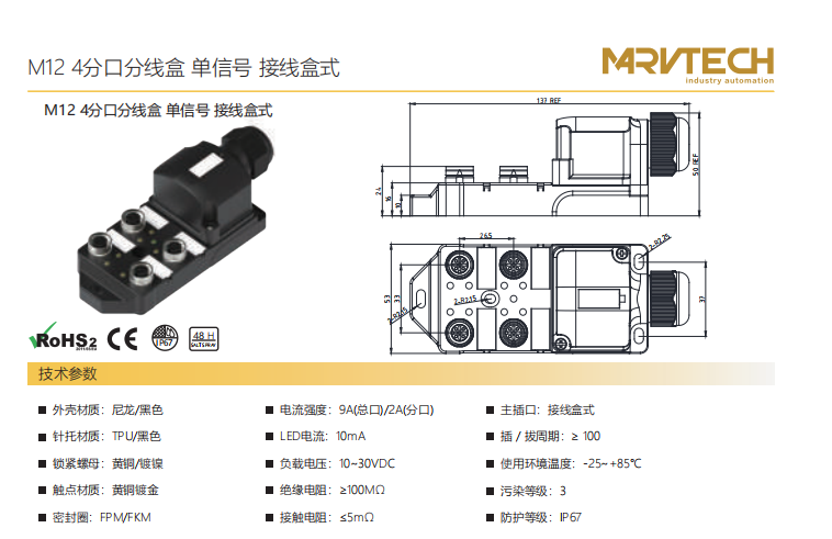 M12-4スプリットスプリットボックス-単信号-直出線式