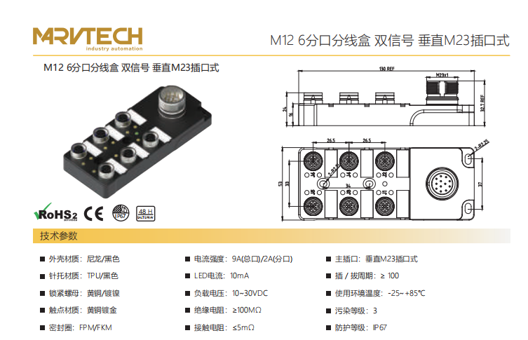 M12-6スプリットスプリットボックス-単信号-垂直M23ソケット式