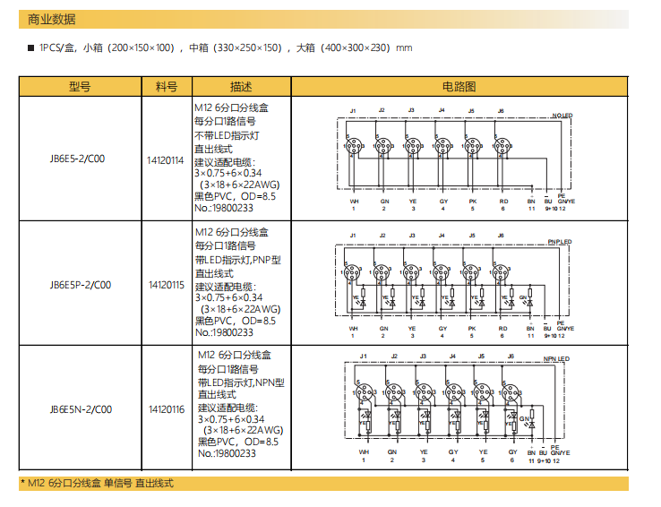 M12-6分口分線箱-単信号-直出線式