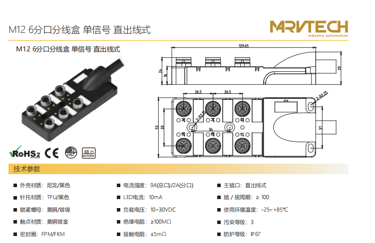 M12-6スプリットスプリットボックス-デュアル信号-直出線式