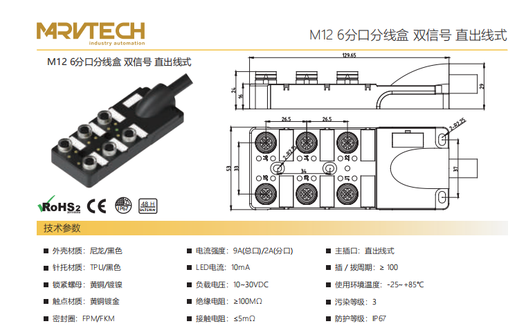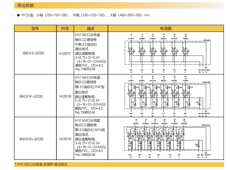 M12-6スプリットスプリットボックス-デュアル信号-直出線式