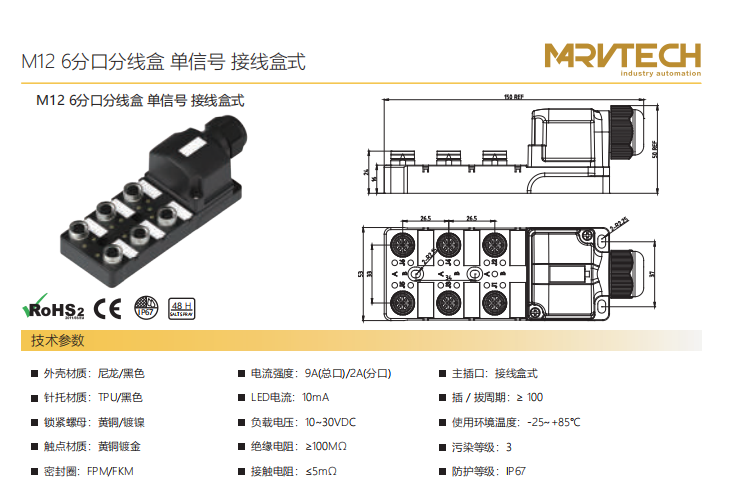 M12-6スプリットスプリットボックス-単信号-配線ボックス