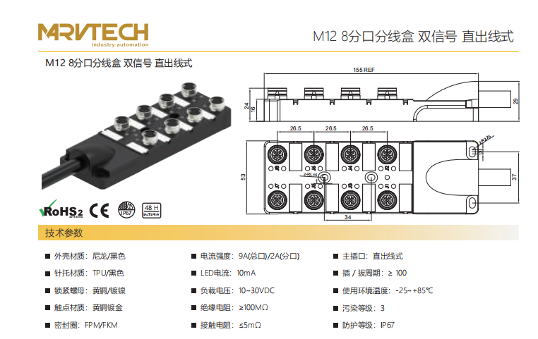 M12-8スプリットスプリットボックス-デュアル信号-直出線式