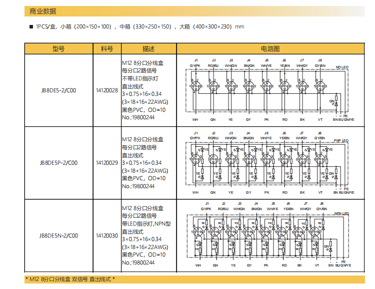 M12-8スプリットスプリットボックス-単信号-直出線式
