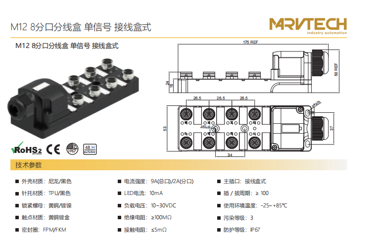 M12-8スプリットスプリットボックス-単信号-配線ボックス