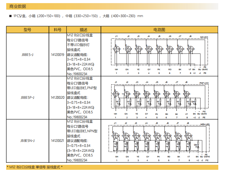 M12-8スプリットスプリットボックス-デュアル信号-直出線式