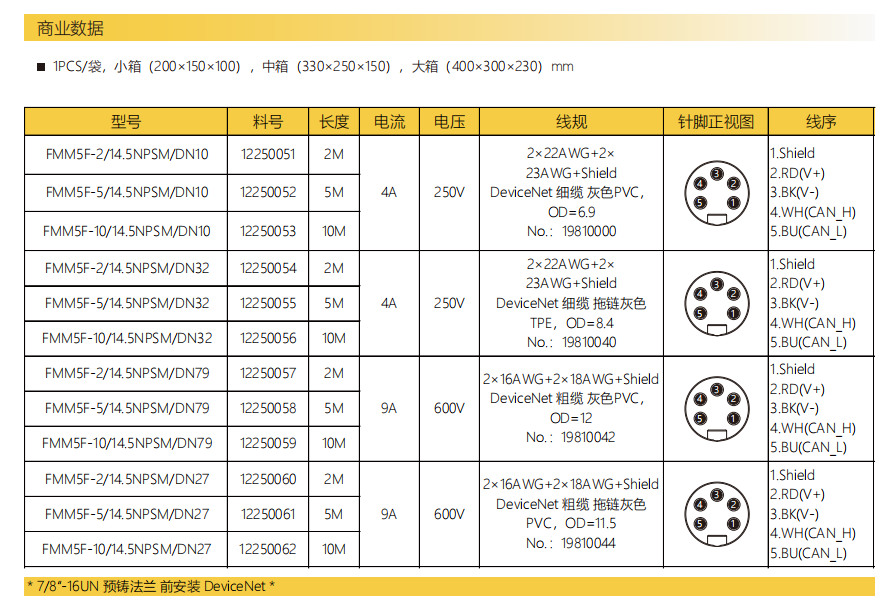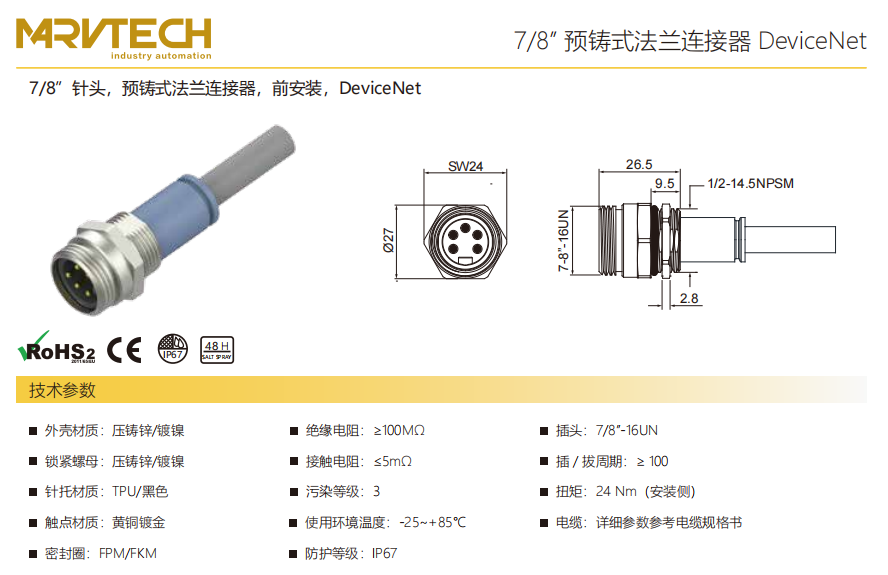 78”針-プレキャストフランジコネクタ-フロントマウント-DeviceNet