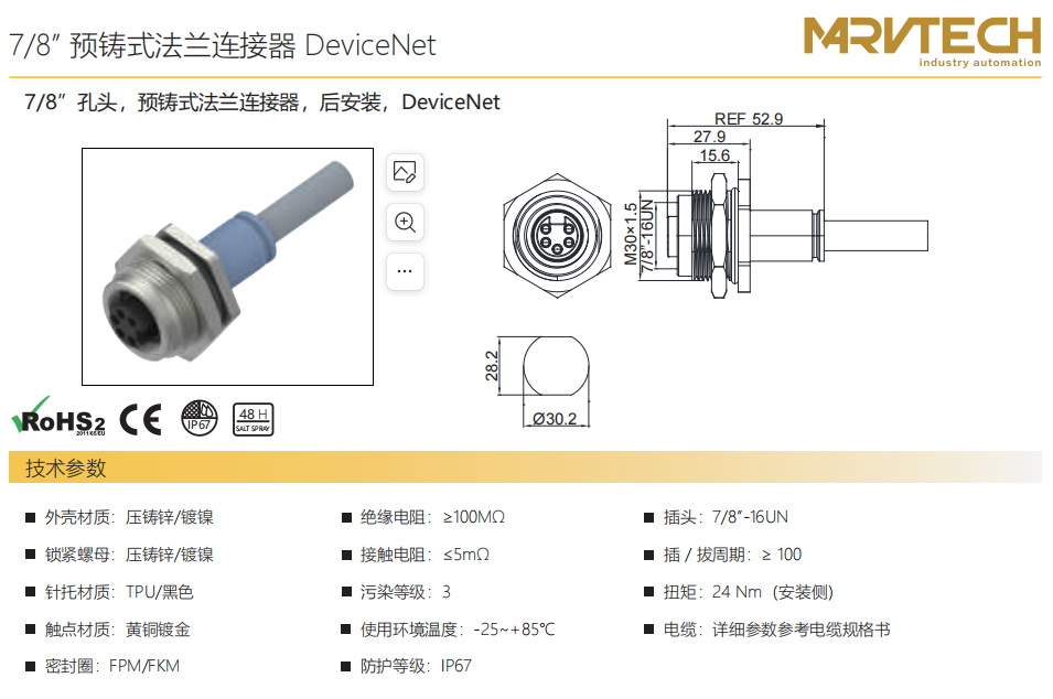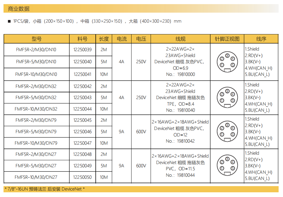 7/8」針-プレキャストフランジコネクタ-フロントマウント-DeviceNet