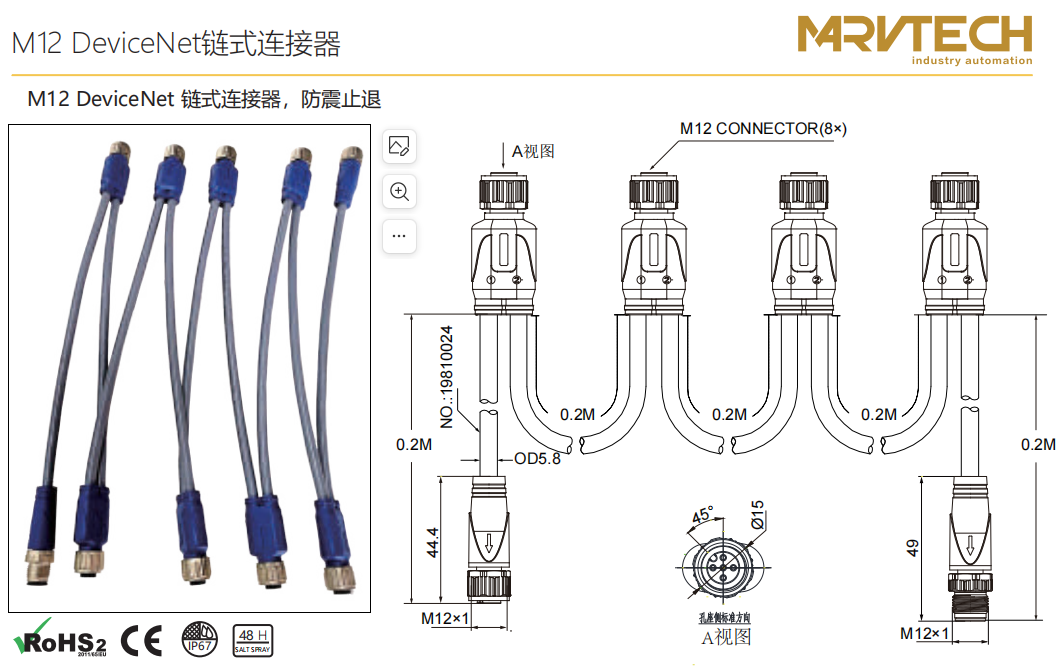 M12 DeviceNetチェーンコネクタ、防振後退防止