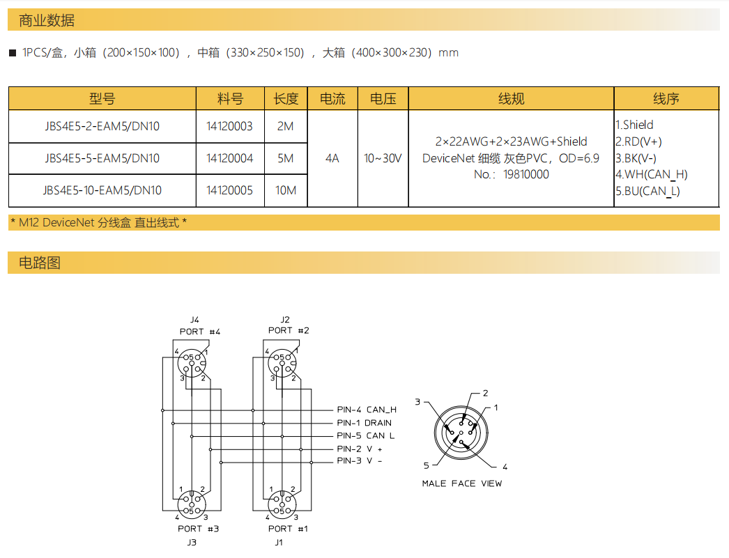 M12 DeviceNetケーブルボックス-コネクタ式