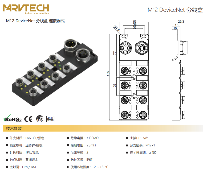M12 DeviceNet分線ボックス-直出線式
