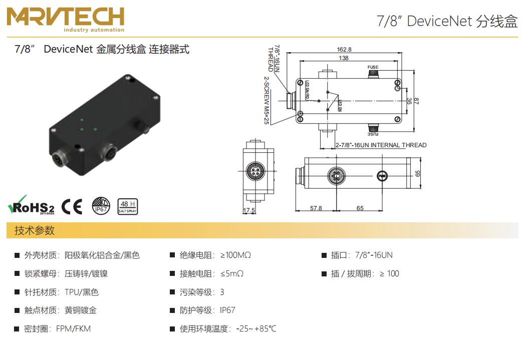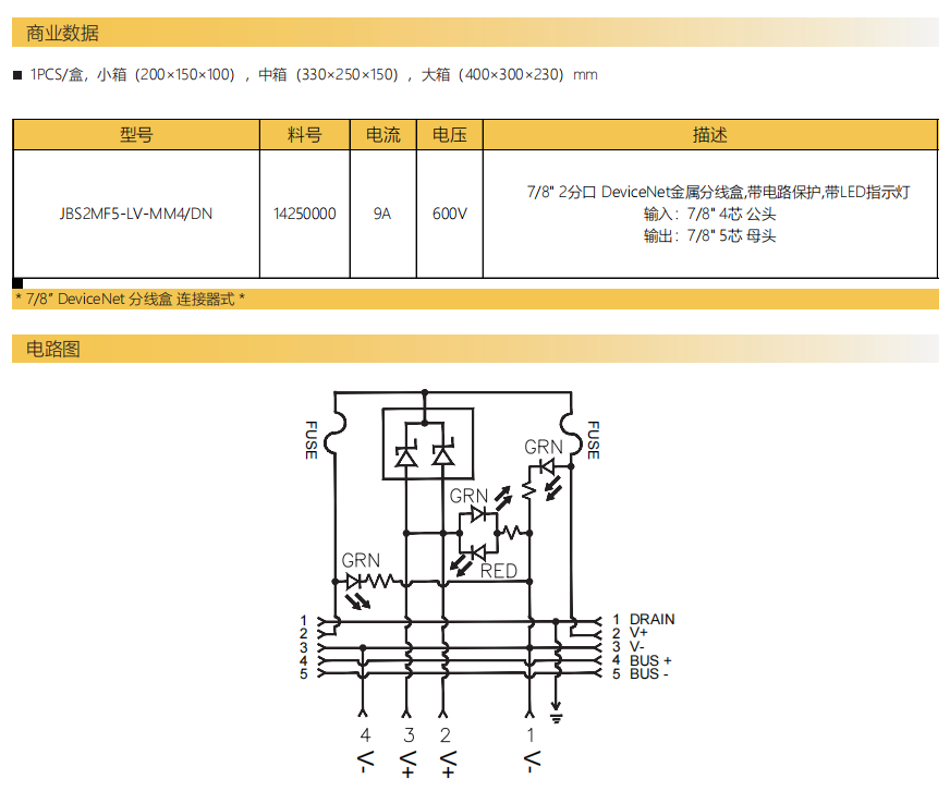 7/8”DeviceNet金属分線箱-コネクタ式