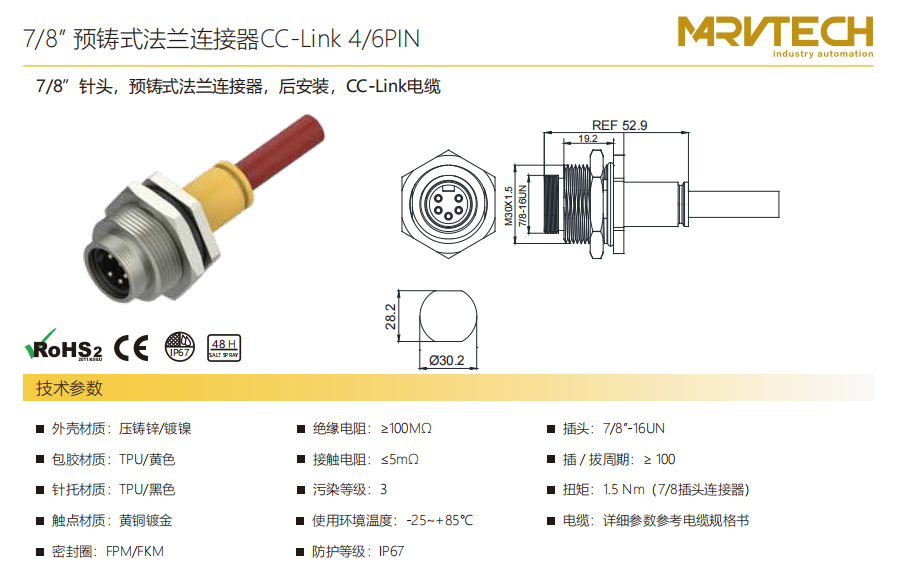 78」-針-プレキャストフランジコネクタ-後付け-CC-Linkケーブル