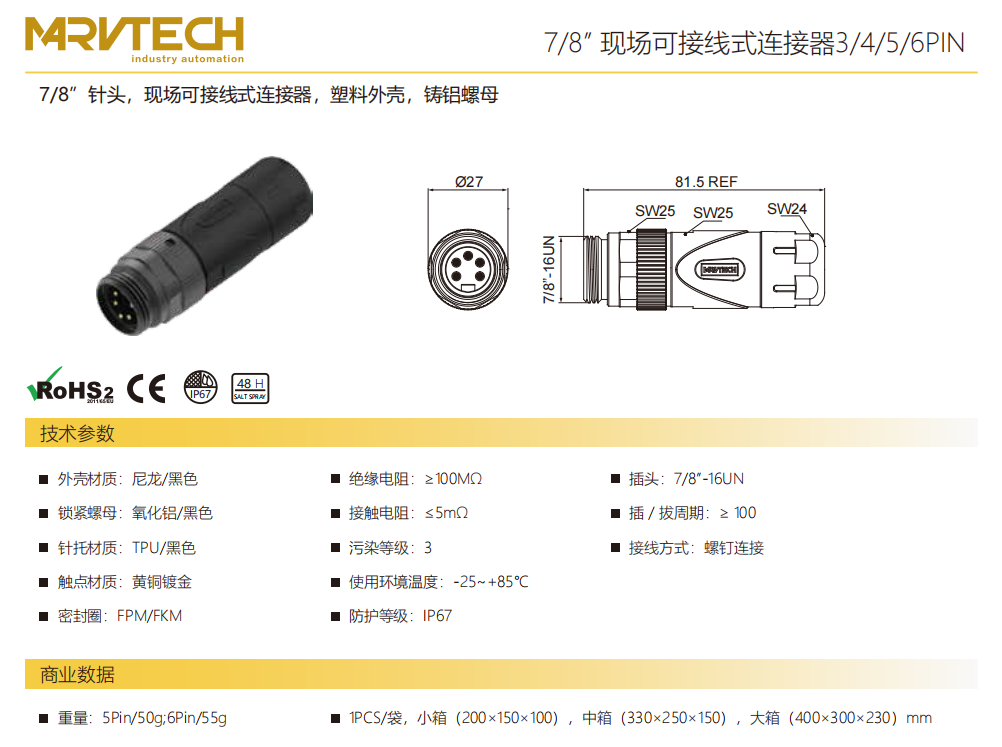 78”−針−現場結線可能コネクタ−プラスチックハウジング−アルミニウム鋳
