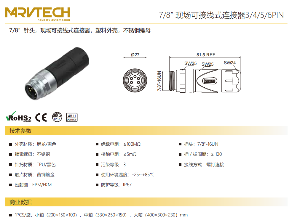 78」針-現場配線可能コネクタ-プラスチックケース-ステンレスナット-3456 PIN