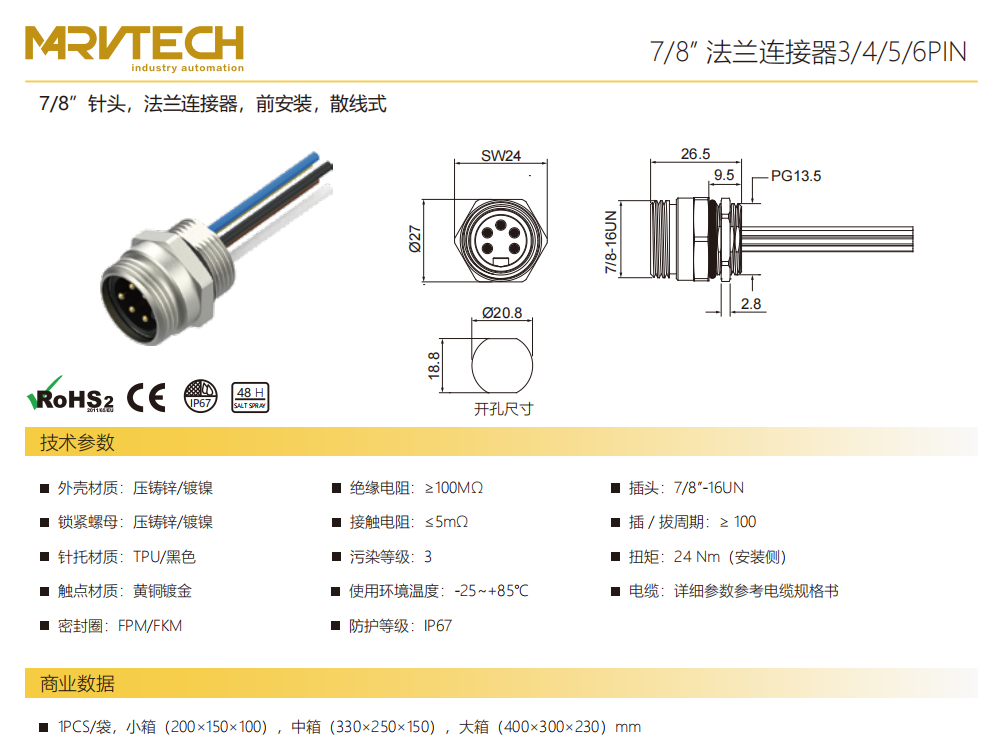 78」針-フランジコネクタ-前取付け-散線式-3456 PIN
