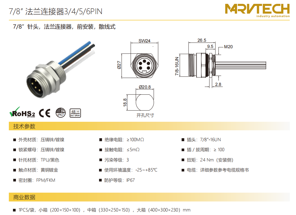 78」-針-フランジコネクタ-前取付け-散線式-3456 PIN