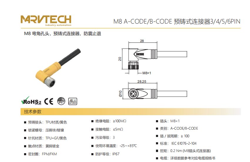 M 8-オリフィスヘッド-プレキャストコネクタ-防振後退防止-8 PIN