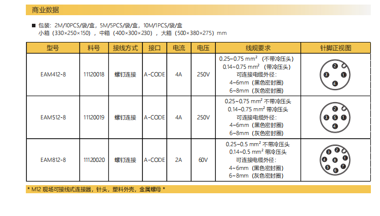 M 12-コーナーニードル-現場結線可能コネクタ-プラスチックケース金属ナット-4+5+8 PIN